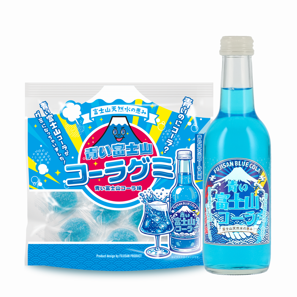 富士山の天然水を用い、山肌を思わせる青色が印象的な人気土産「青い富士山コーラ」。その味わいと世界観を“噛んで楽しむ”形に再構築した新商品『青い富士山コーラグミ』を、2026年5月1日より発売します。原液を使用して爽やかなコーラ感を再現。原油価格の変動を背景に資材原料(ナフサ等)の調達が不安定化する中、資材確保に時間を要し発売時期を調整したうえでの発売となります。