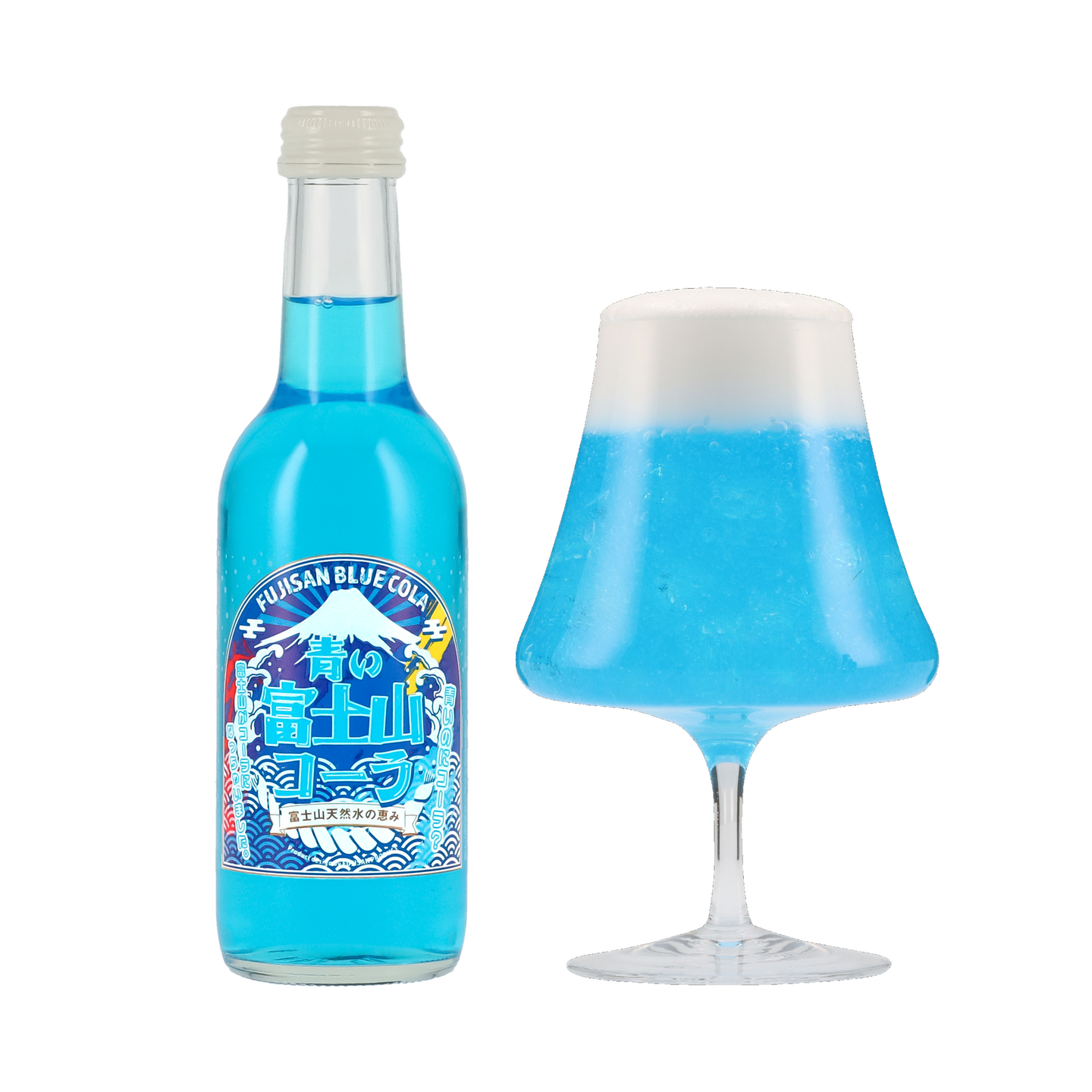 ■ 富士山天然水仕込みの“青いコーラ”――注ぐと雪のような泡が立つ人気土産