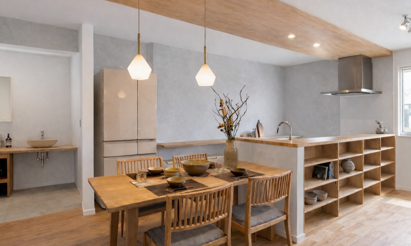 ¥ê¥Ó¥ó¥°¤ËÀߤ±¤¿¡Ö¾®¾å¤¬¤ê¾ö¥¹¥Ú¡¼¥¹¡×¡¢ÈÄÄ¥¤êÅ·°æ¤È¥°¥ì¡¼¼¿¶ô¤¬Ä´Ï¤¹¤ë¥À¥¤¥Ë¥ó¥°¥¥Ã¥Á¥ó¤Ê¤É¡¢Ï¤ÎÍî¤ÁÃ夤ÈË̲¤¤ÎÁǺശ¤¬ÀŤ«¤Ë¸ò¤ï¤ëÊ¿²°¤¬´°À®¤·¤Þ¤·¤¿¡£Çß±«»þ´ü¤Î¼¾µ¤¤âµ¤¤Ë¤Ê¤é¤Ê¤¤¼¿¶ô¤Î¸ú²Ì¤ä¡¢½Å¸ü´¶¤Î¤¢¤ë¹âÀǽ¥É¥¤¥ÄÀ½Á뤬ºî¤ê½Ð¤¹Êë¤é¤·¤Î¿´ÃϤ褵¤ò¡¢¤¼¤Ò¼ÂºÝ¤Ë¤´Â䶤¯¤À¤µ¤¤¡£